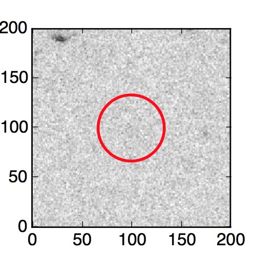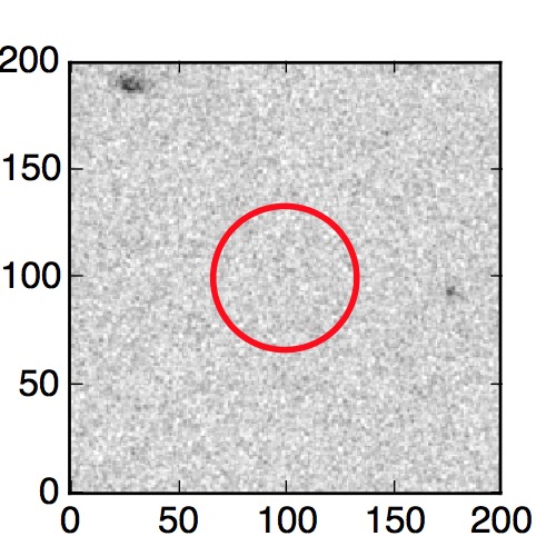 The red circle in the various panels is 1" in radius. The images are 6"x6".