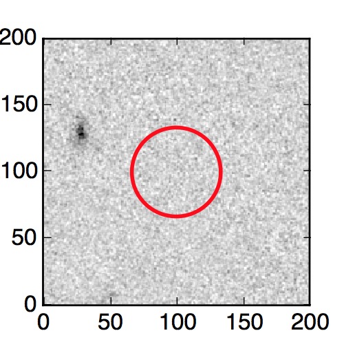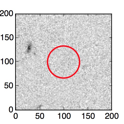 The red circle in the various panels is 1" in radius. The images are 6"x6".