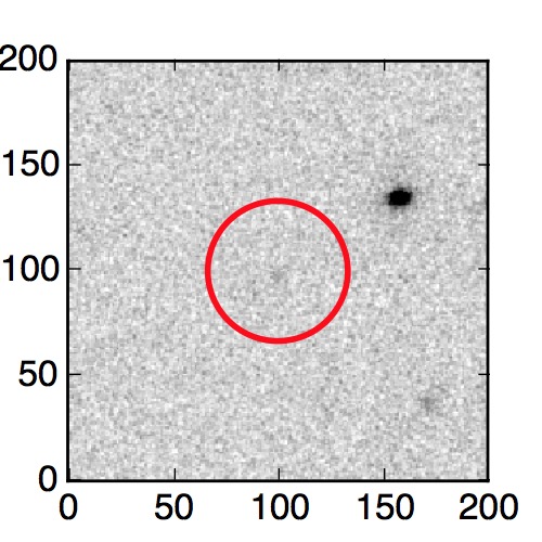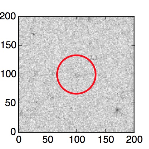 The red circle in the various panels is 1" in radius. The images are 6"x6".