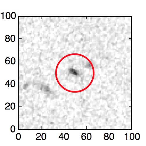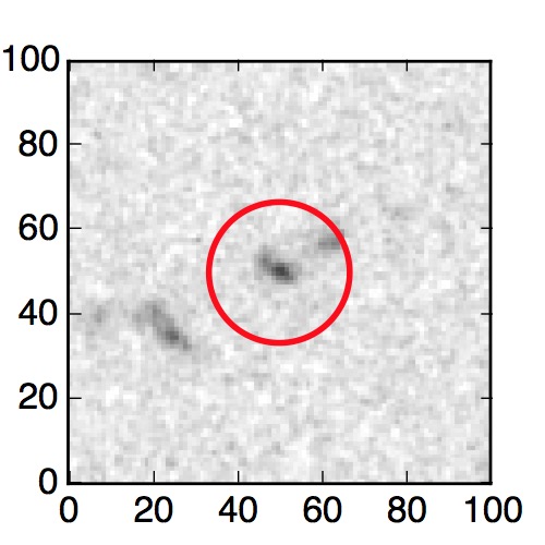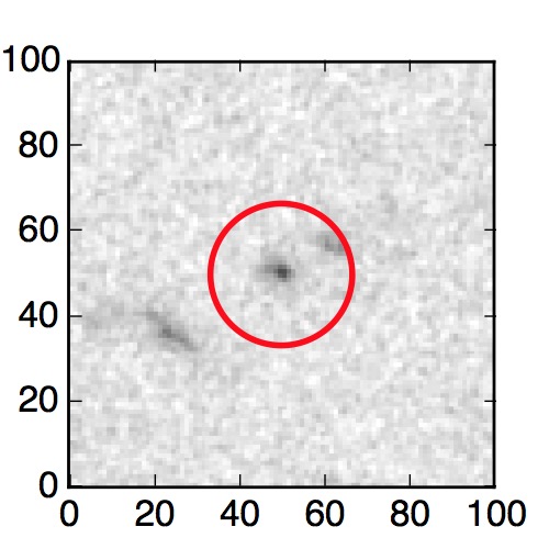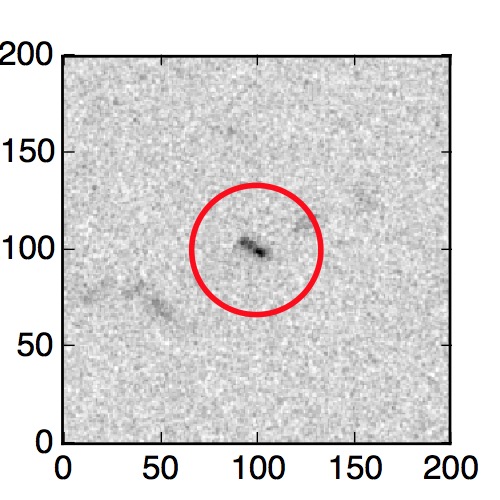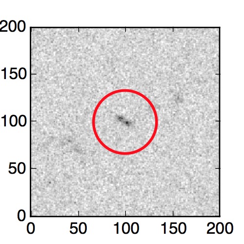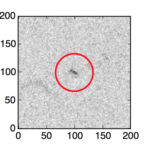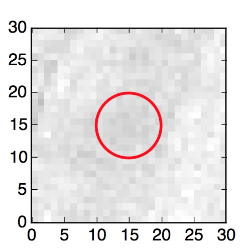The red circle in the various panels is 1" in radius. The images are 6"x6".