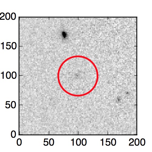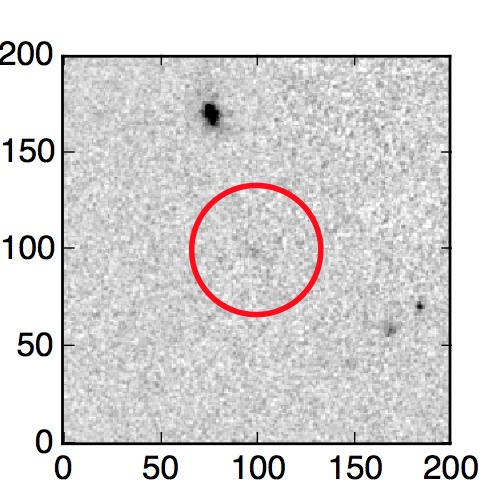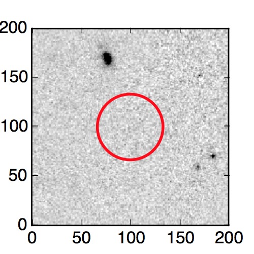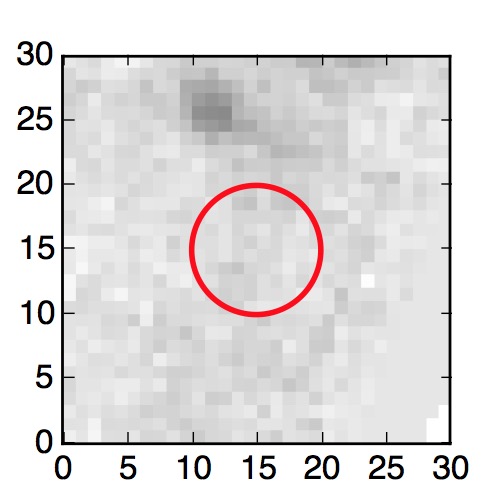 The red circle in the various panels is 1" in radius. The images are 6"x6".