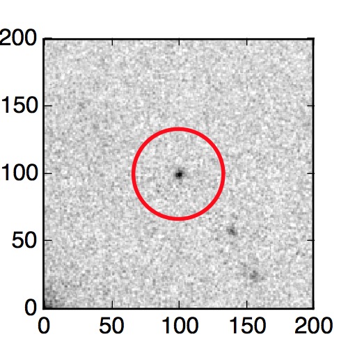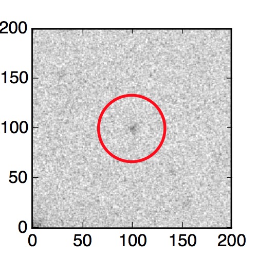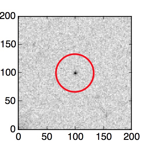 The red circle in the various panels is 1" in radius. The images are 6"x6".