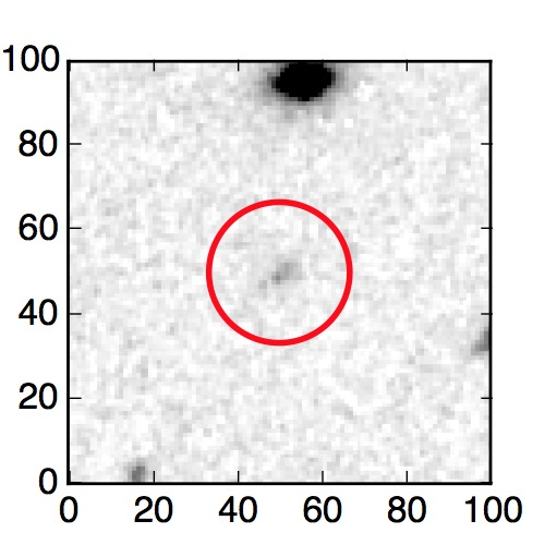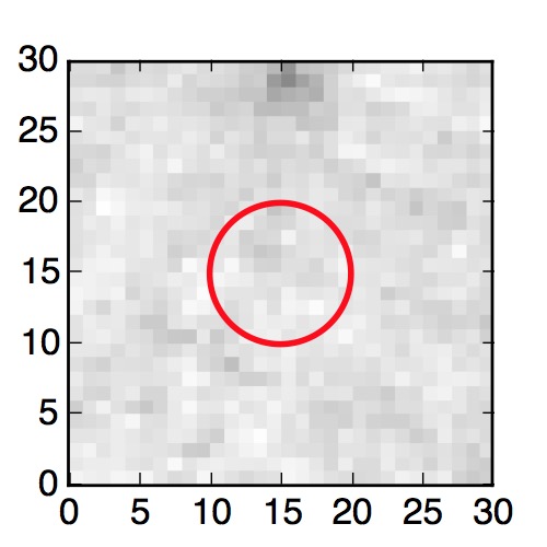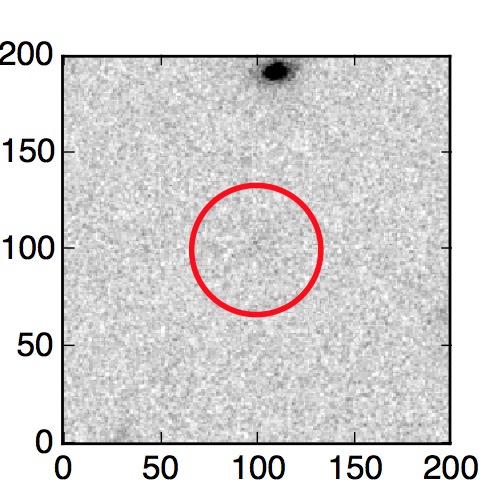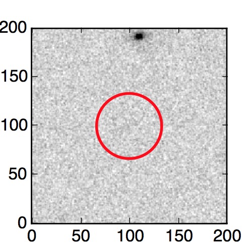 The red circle in the various panels is 1" in radius. The images are 6"x6".