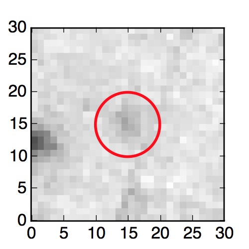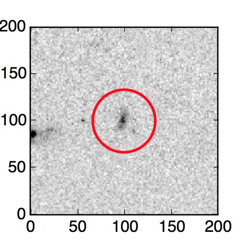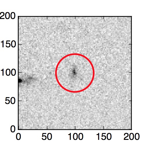 The red circle in the various panels is 1" in radius. The images are 6"x6".