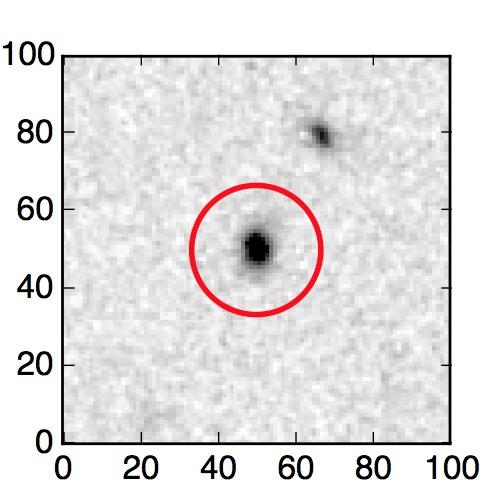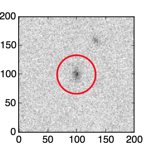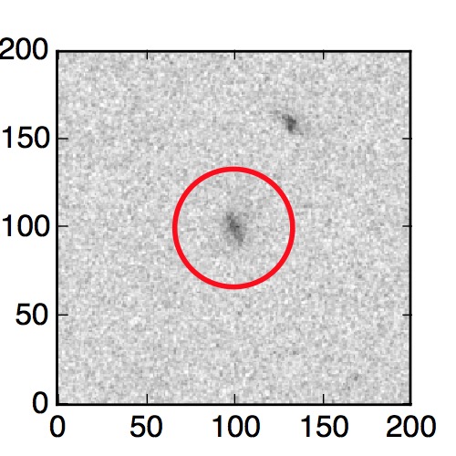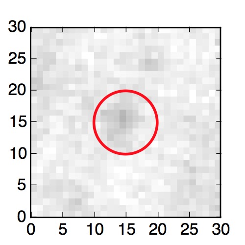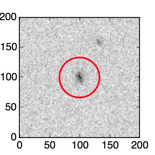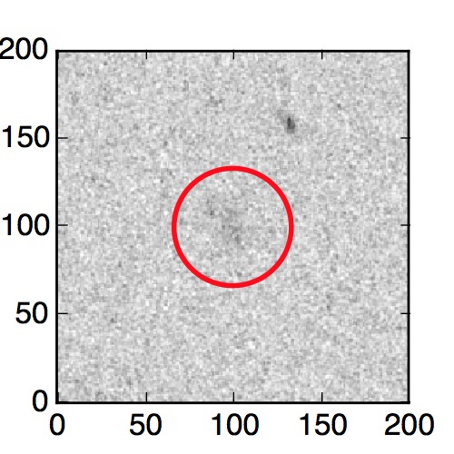 The red circle in the various panels is 1" in radius. The images are 6"x6".