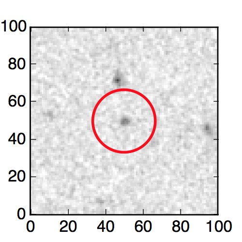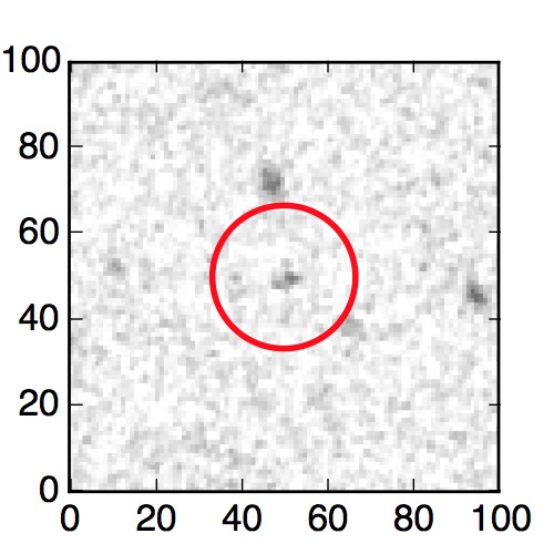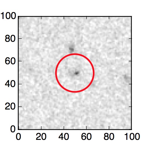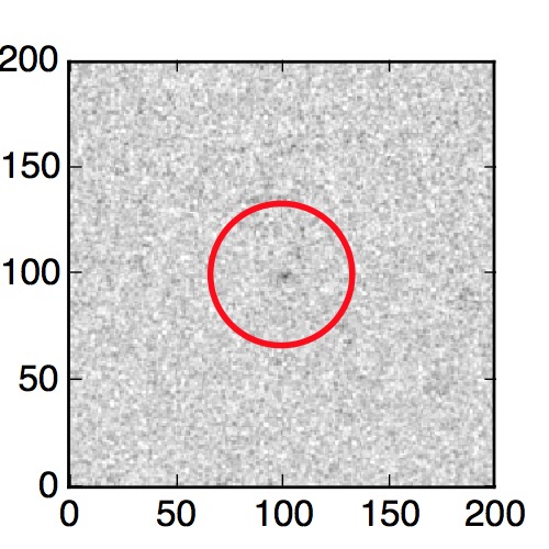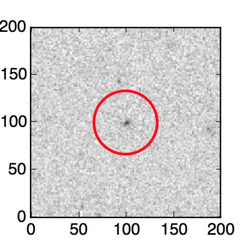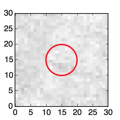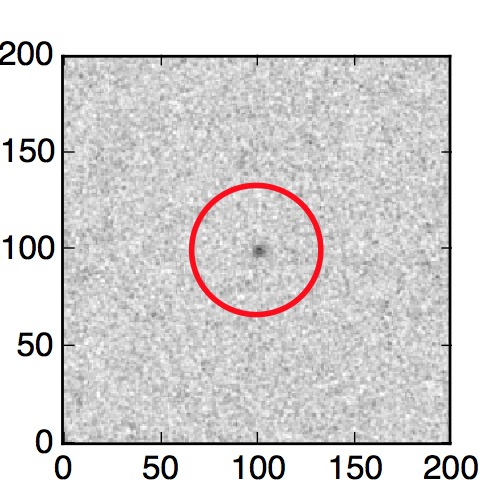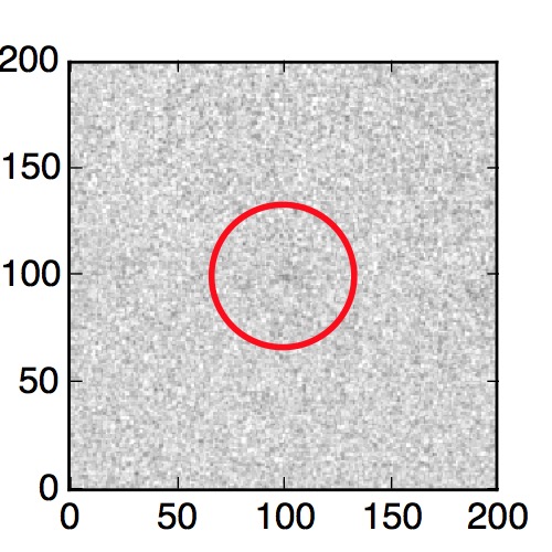 The red circle in the various panels is 1" in radius. The images are 6"x6".