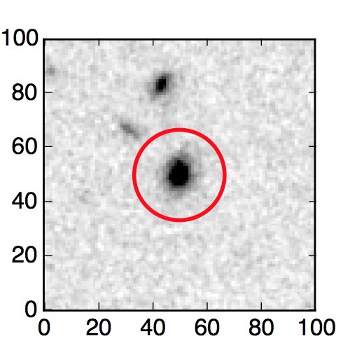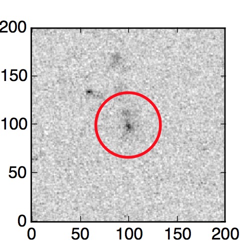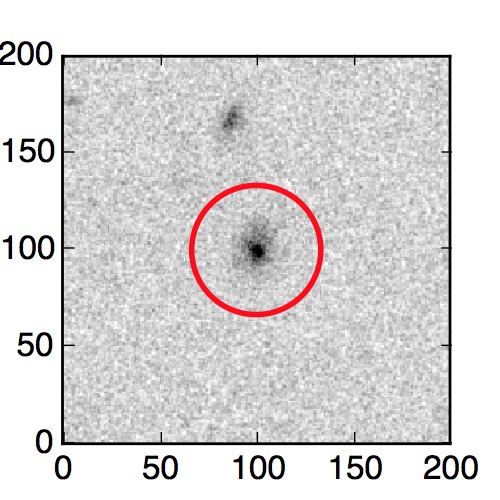 The red circle in the various panels is 1" in radius. The images are 6"x6".
