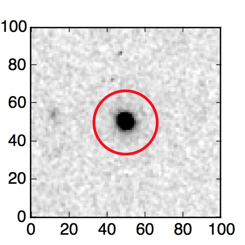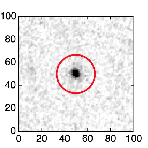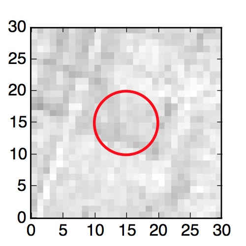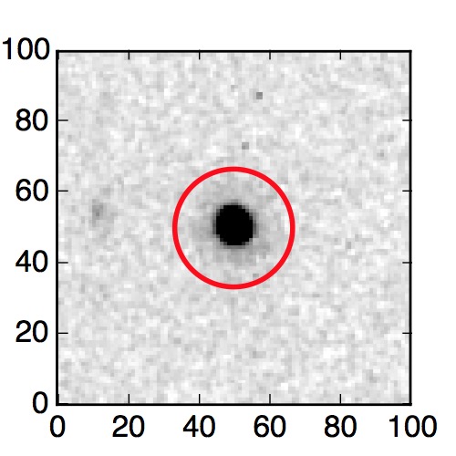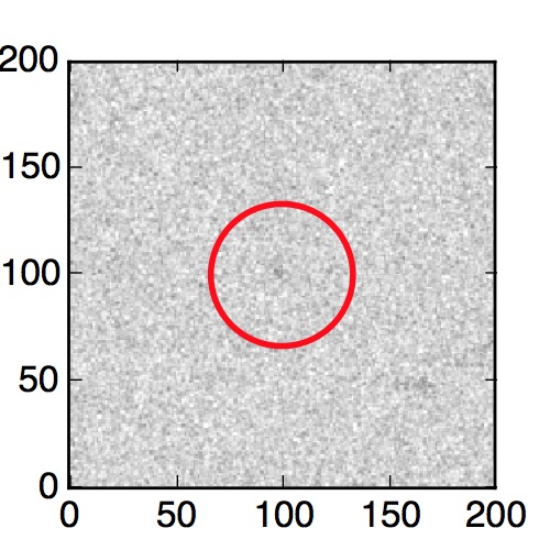 The red circle in the various panels is 1" in radius. The images are 6"x6".