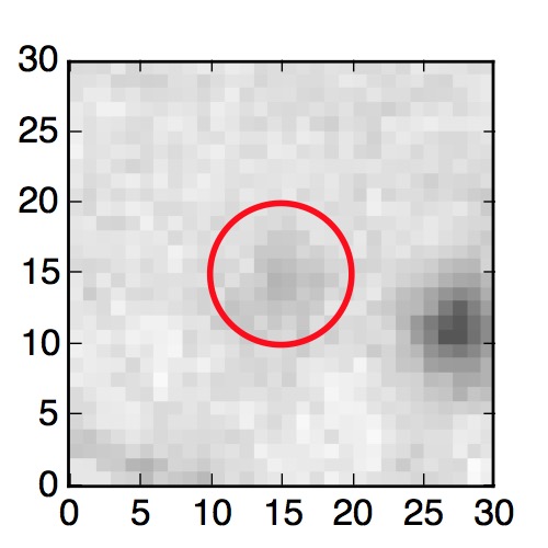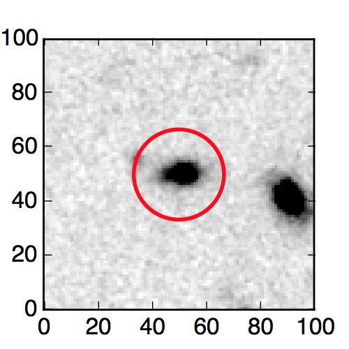 The red circle in the various panels is 1" in radius. The images are 6"x6".