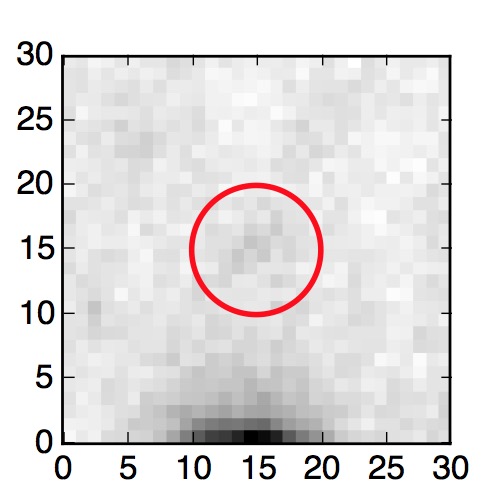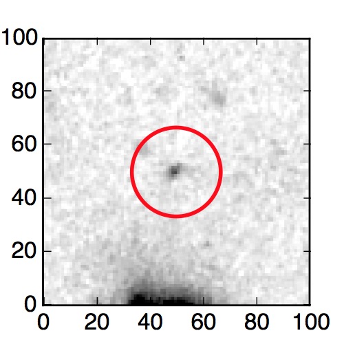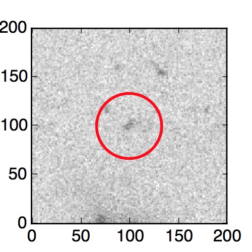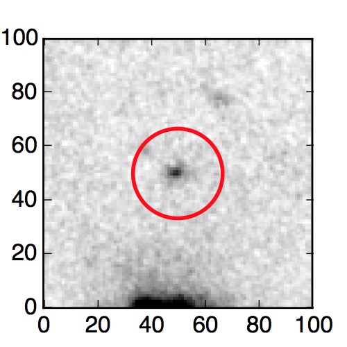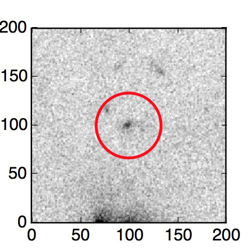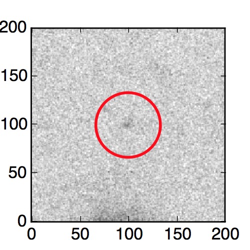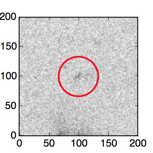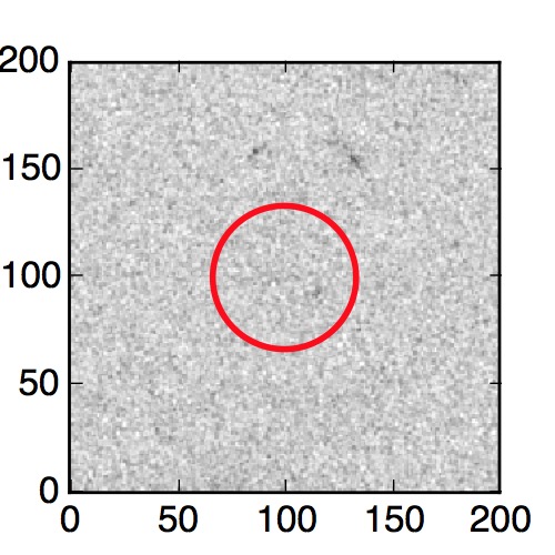 The red circle in the various panels is 1" in radius. The images are 6"x6".