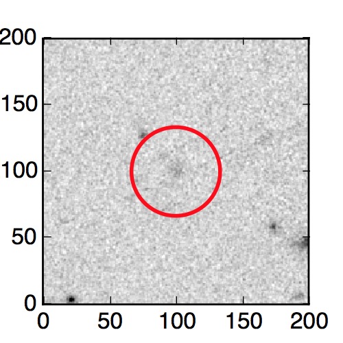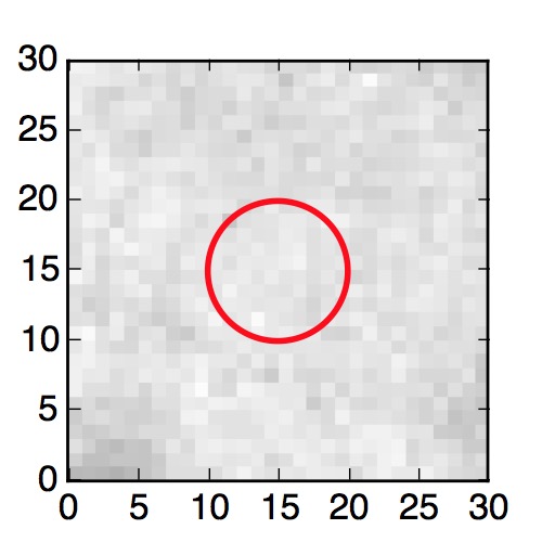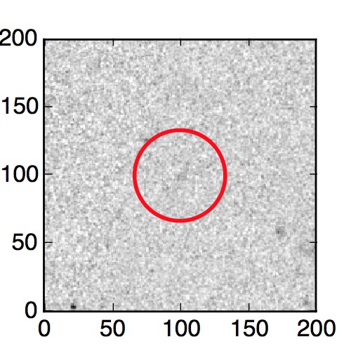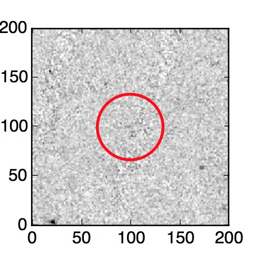 The red circle in the various panels is 1" in radius. The images are 6"x6".