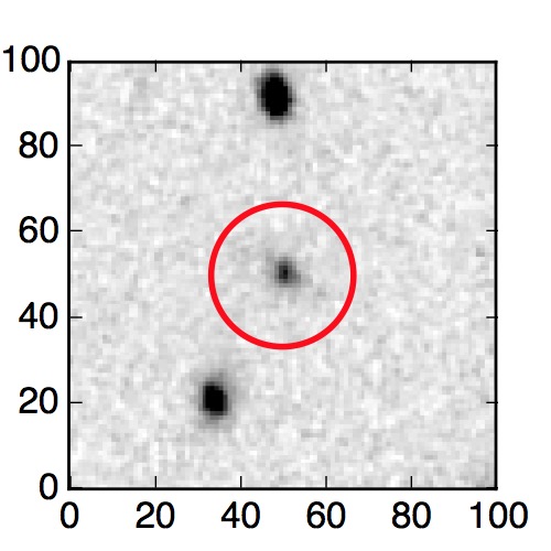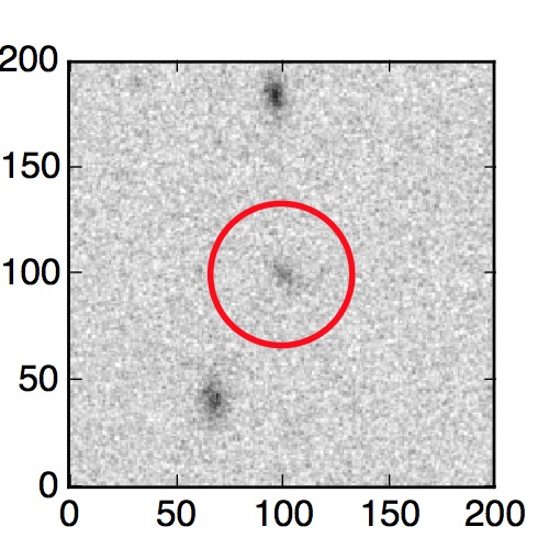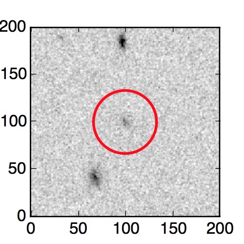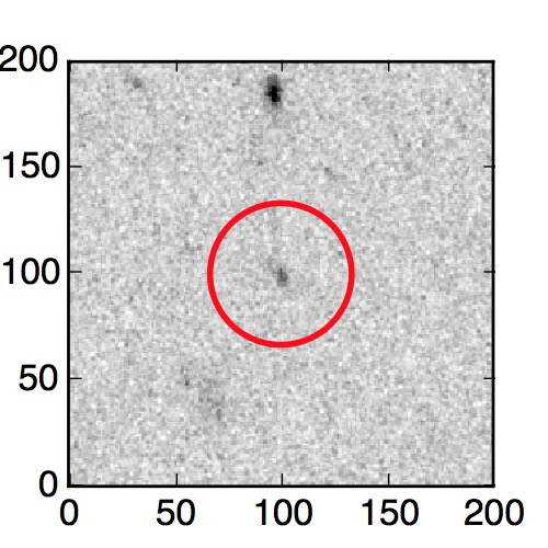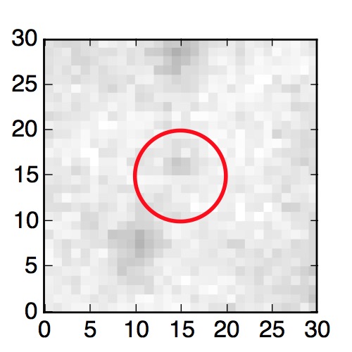 The red circle in the various panels is 1" in radius. The images are 6"x6".