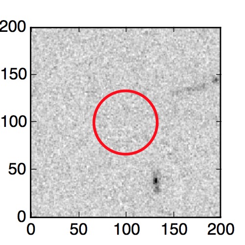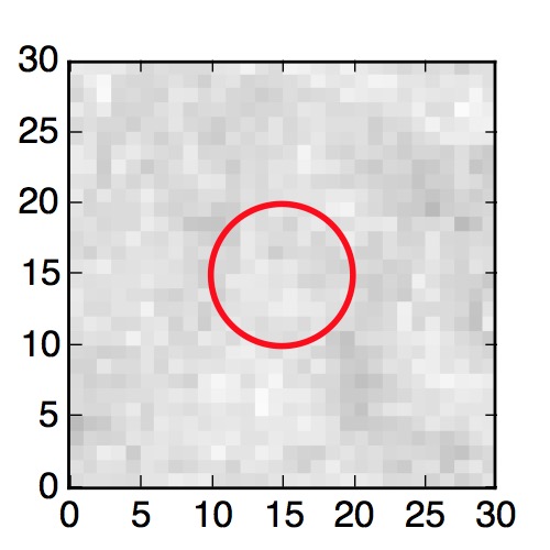 The red circle in the various panels is 1" in radius. The images are 6"x6".