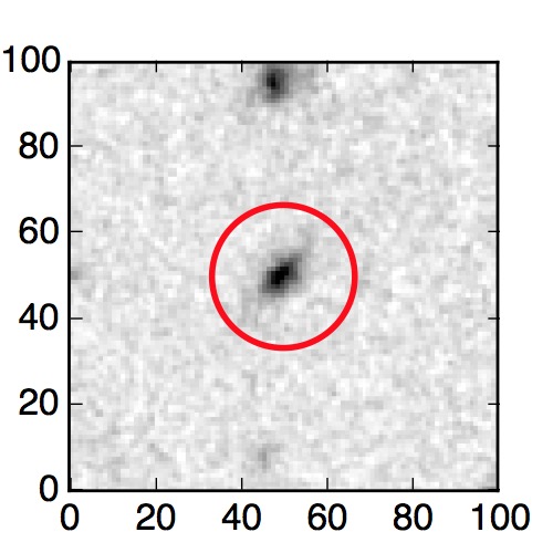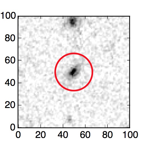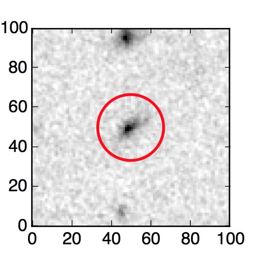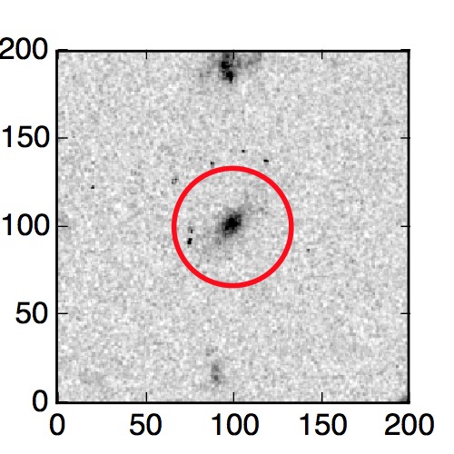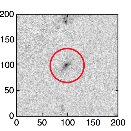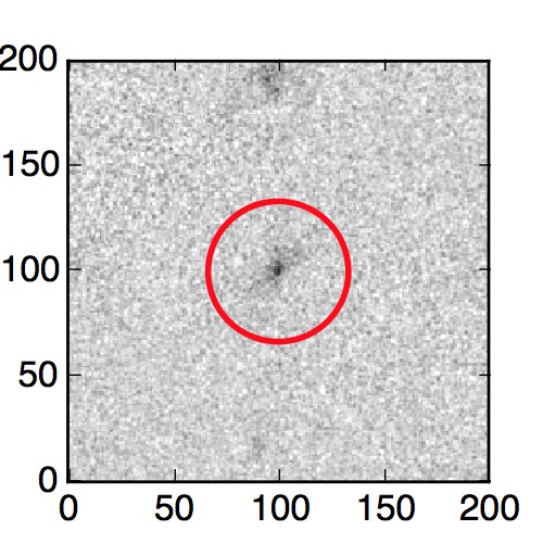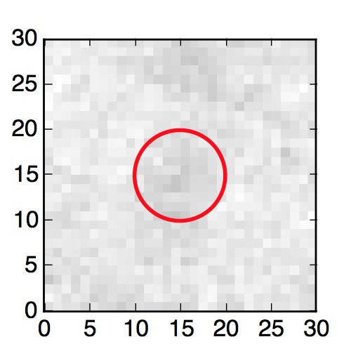 The red circle in the various panels is 1" in radius. The images are 6"x6".