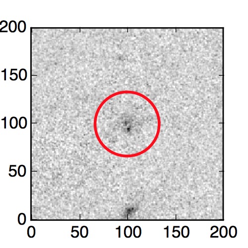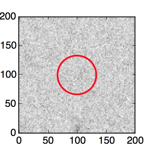 The red circle in the various panels is 1" in radius. The images are 6"x6".