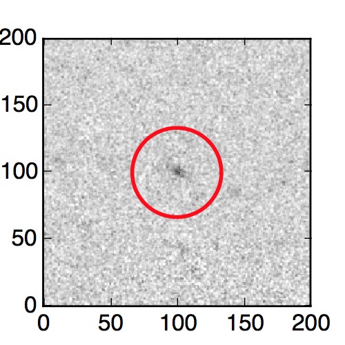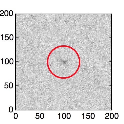 The red circle in the various panels is 1" in radius. The images are 6"x6".