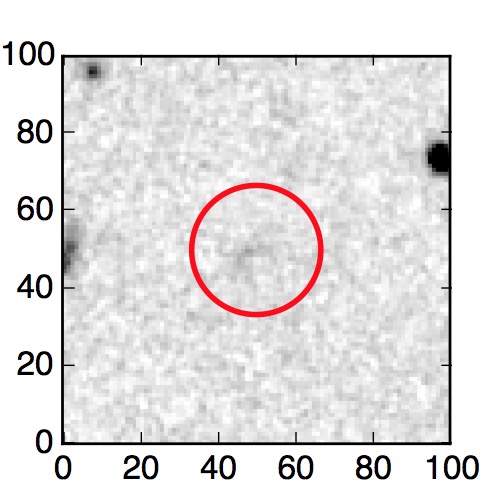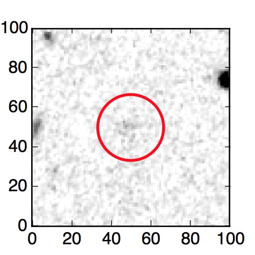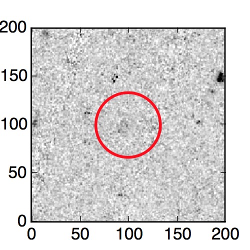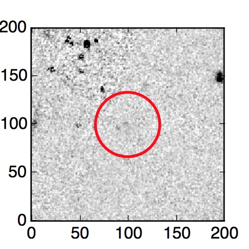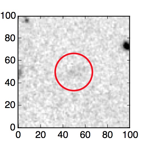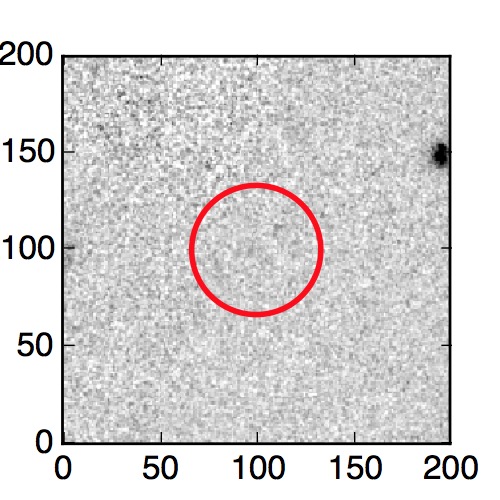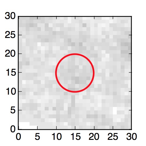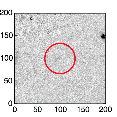 The red circle in the various panels is 1" in radius. The images are 6"x6".