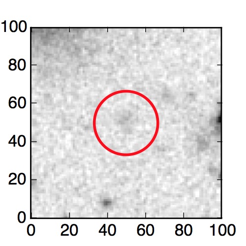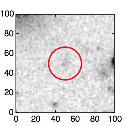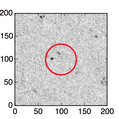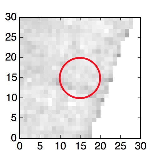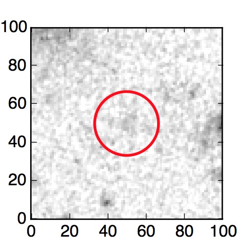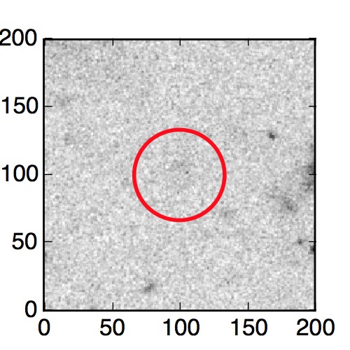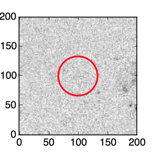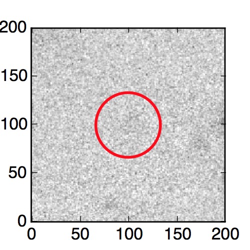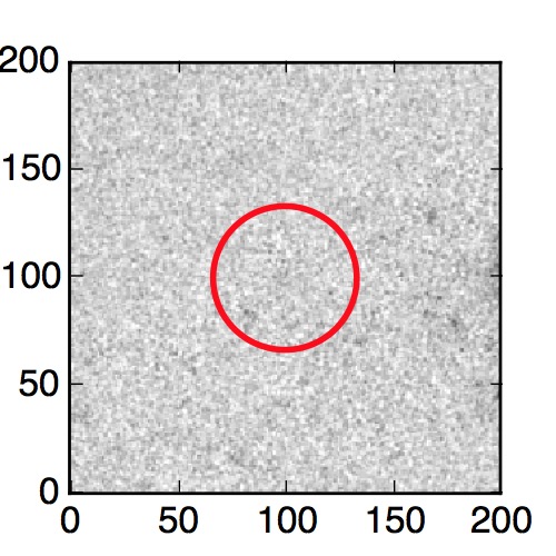 The red circle in the various panels is 1" in radius. The images are 6"x6".