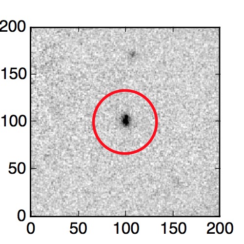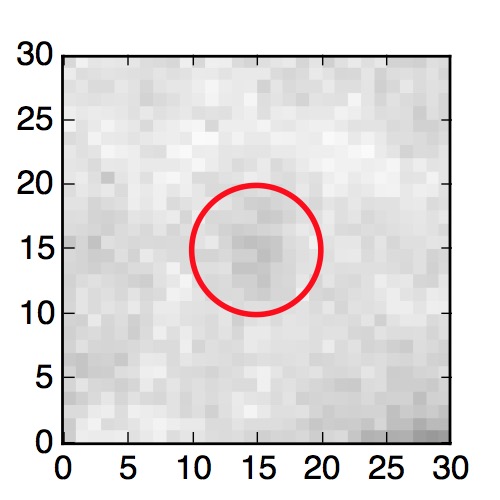 The red circle in the various panels is 1" in radius. The images are 6"x6".