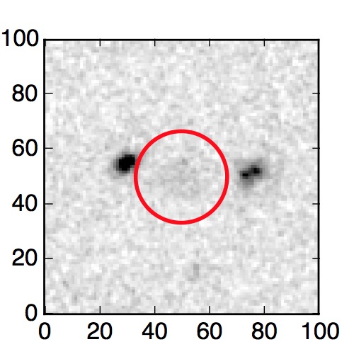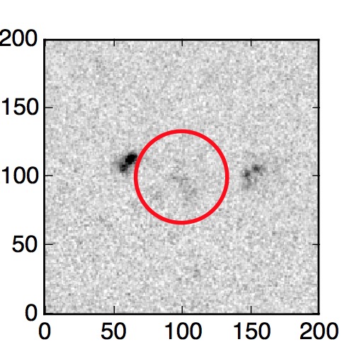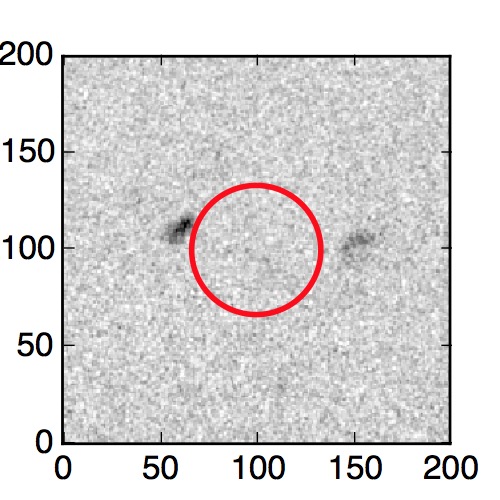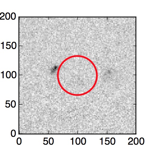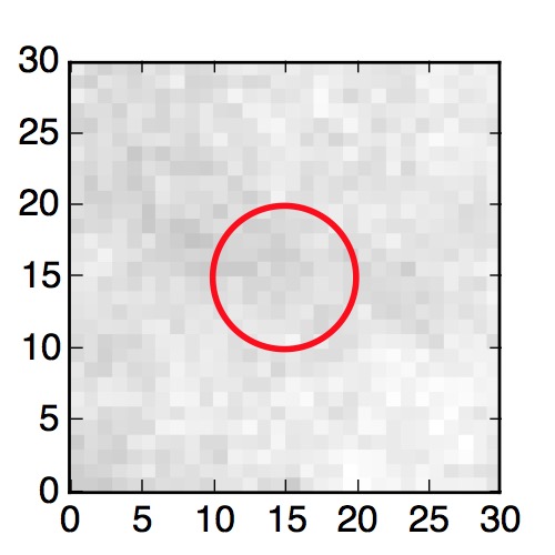 The red circle in the various panels is 1" in radius. The images are 6"x6".