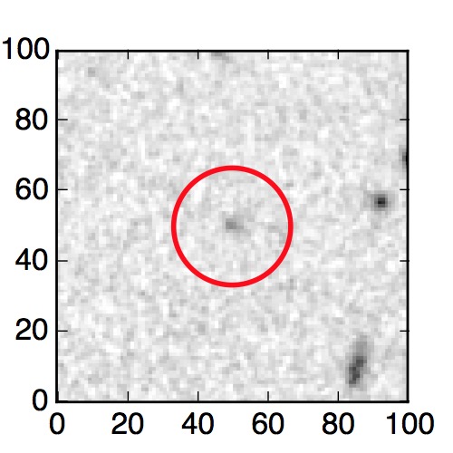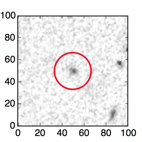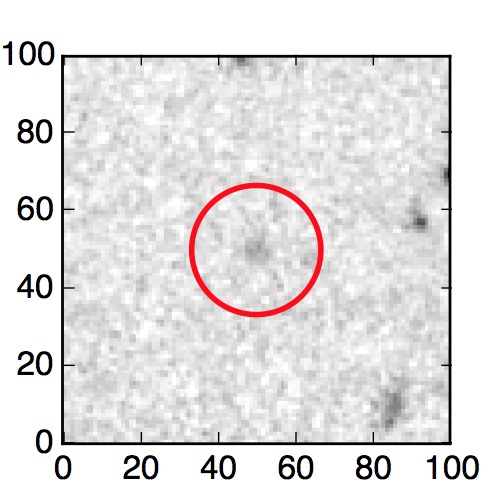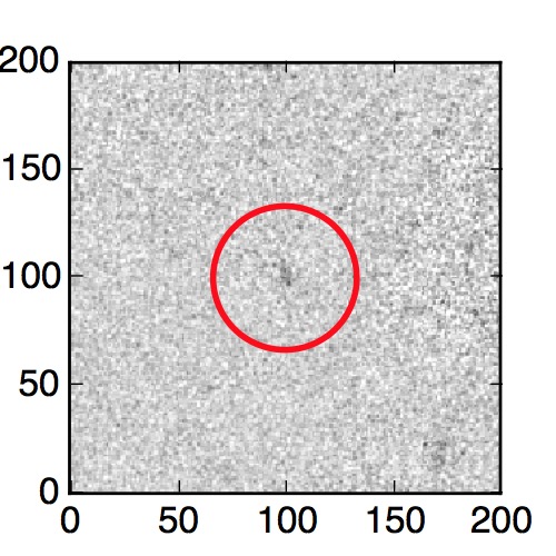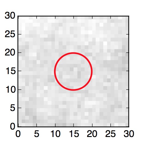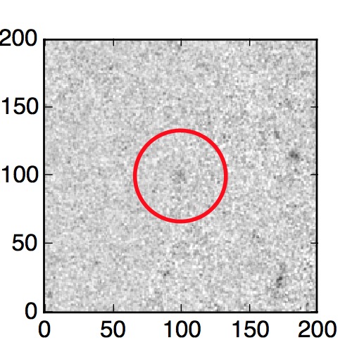 The red circle in the various panels is 1" in radius. The images are 6"x6".