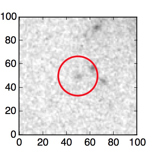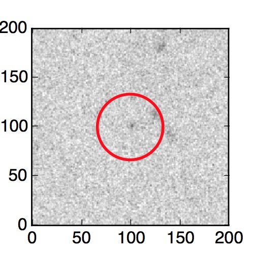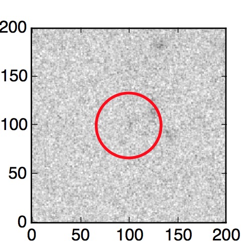 The red circle in the various panels is 1" in radius. The images are 6"x6".