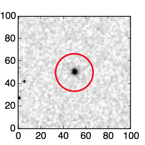The red circle in the various panels is 1" in radius. The images are 6"x6".