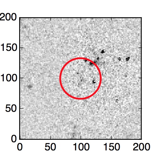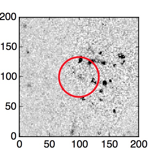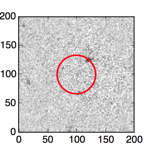 The red circle in the various panels is 1" in radius. The images are 6"x6".
