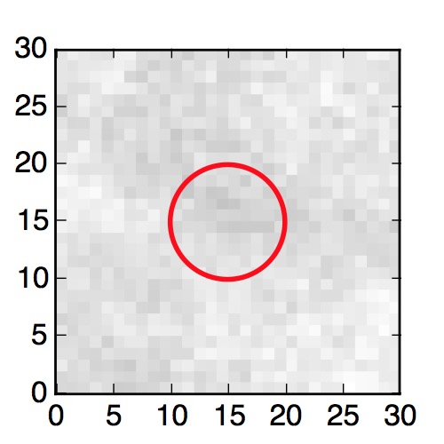 The red circle in the various panels is 1" in radius. The images are 6"x6".
