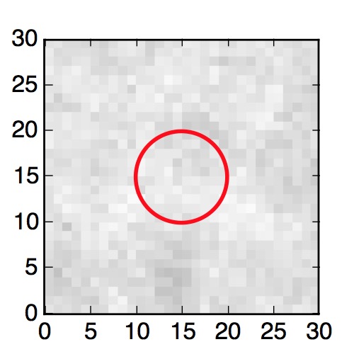 The red circle in the various panels is 1" in radius. The images are 6"x6".