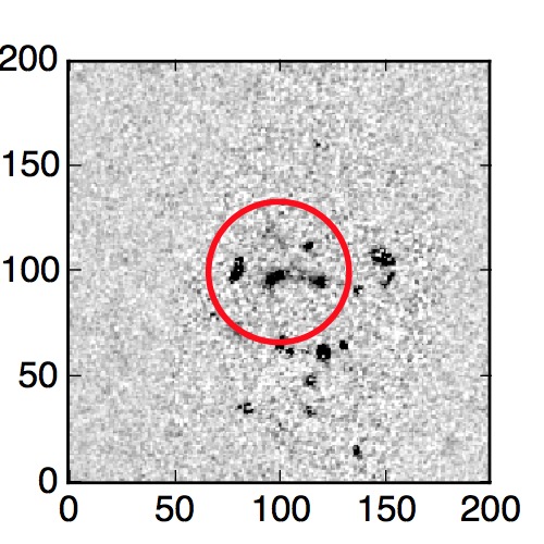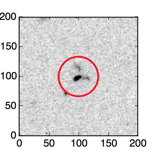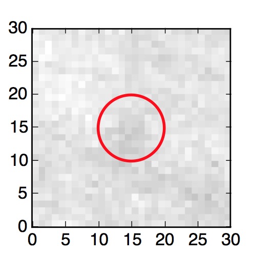 The red circle in the various panels is 1" in radius. The images are 6"x6".