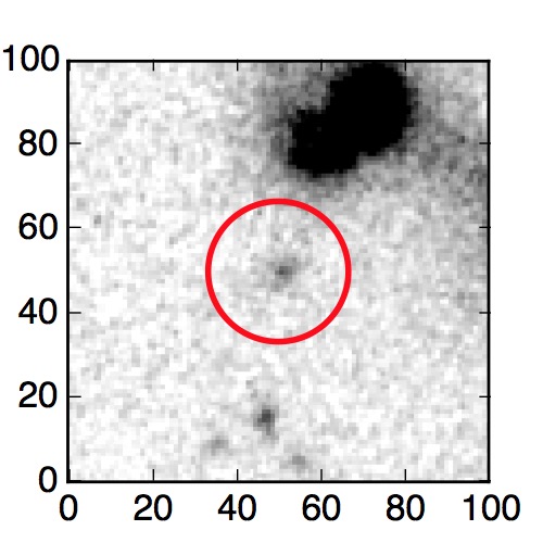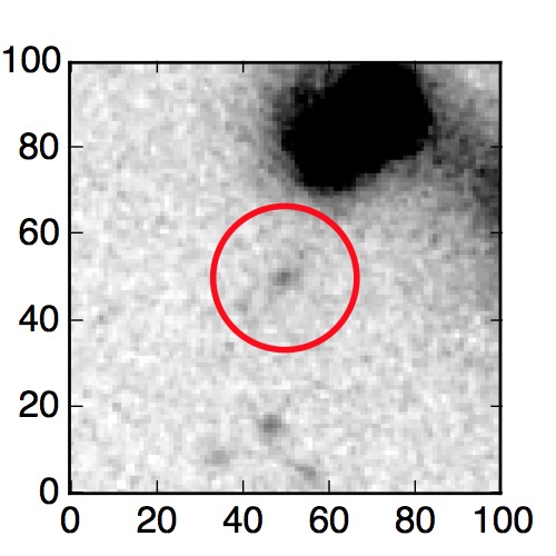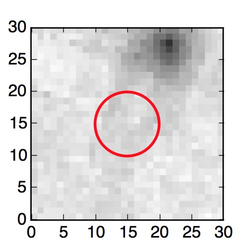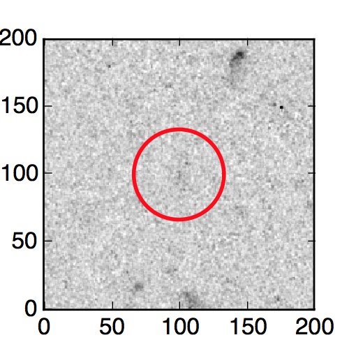The red circle in the various panels is 1" in radius. The images are 6"x6".