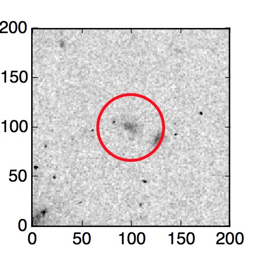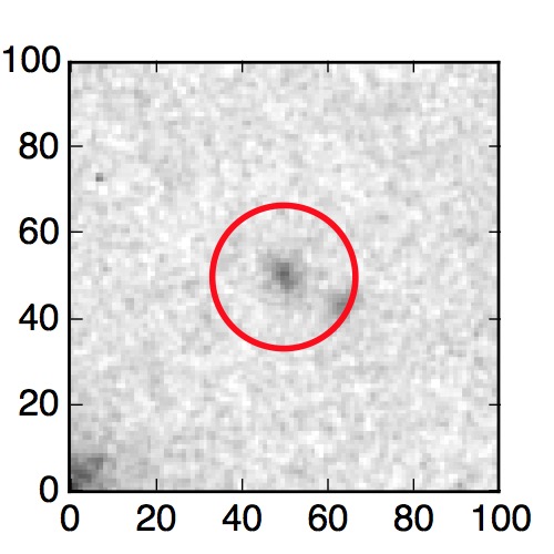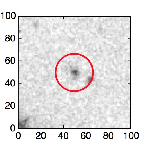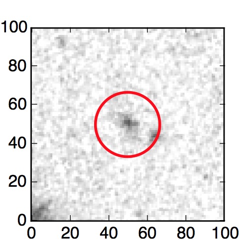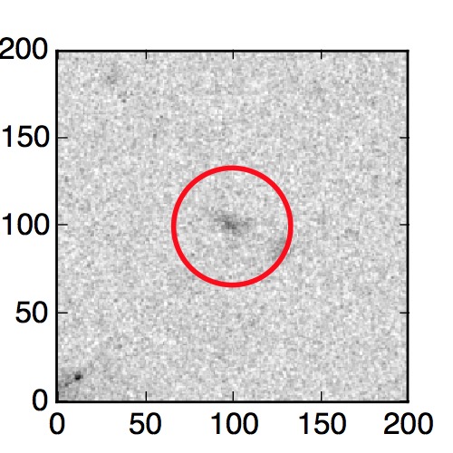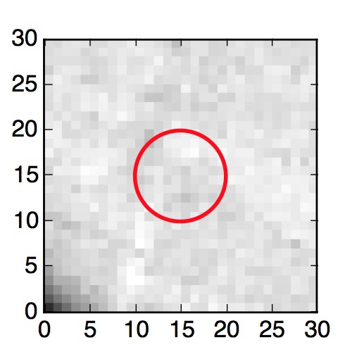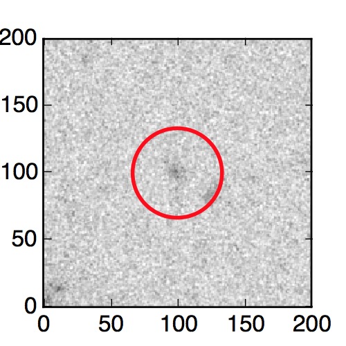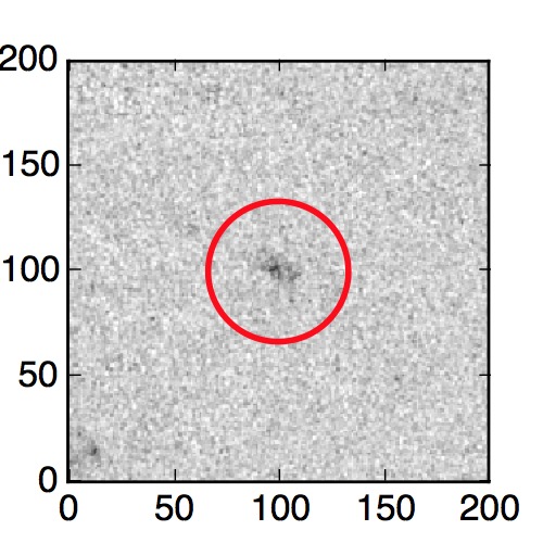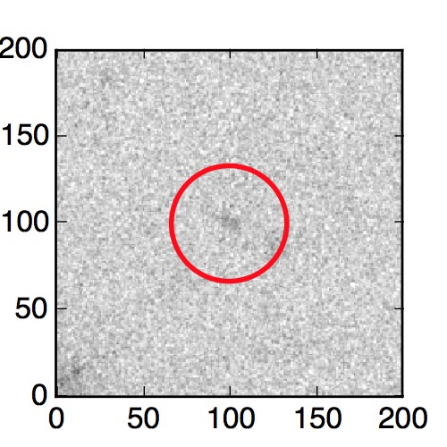 The red circle in the various panels is 1" in radius. The images are 6"x6".