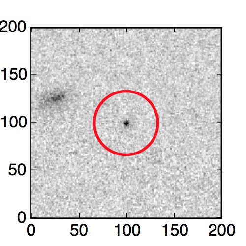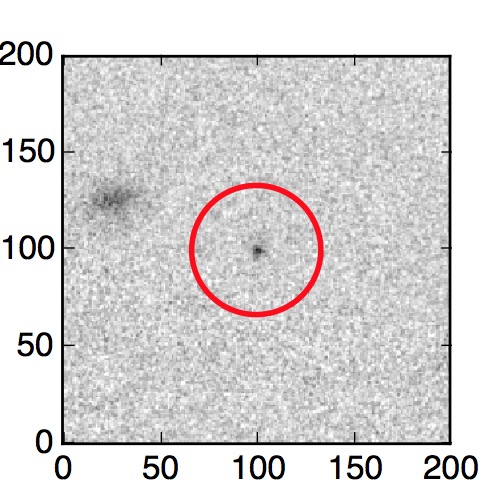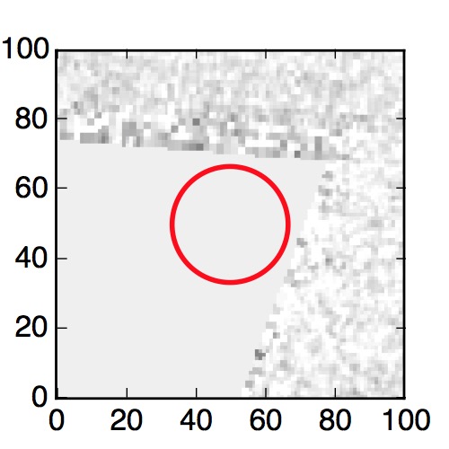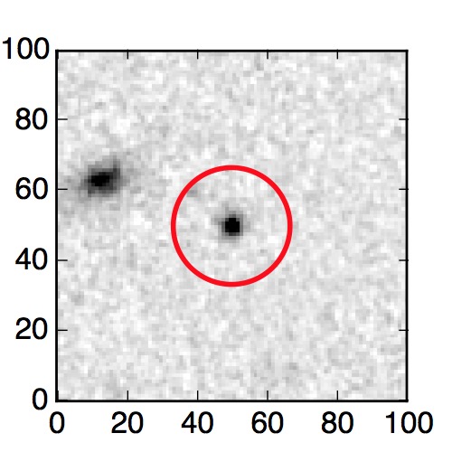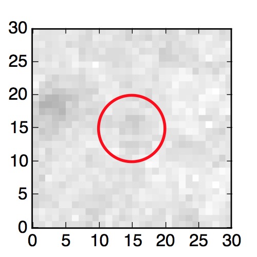 The red circle in the various panels is 1" in radius. The images are 6"x6".