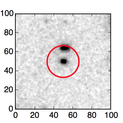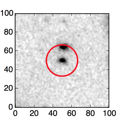 The red circle in the various panels is 1" in radius. The images are 6"x6".