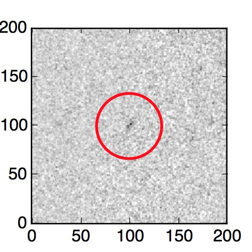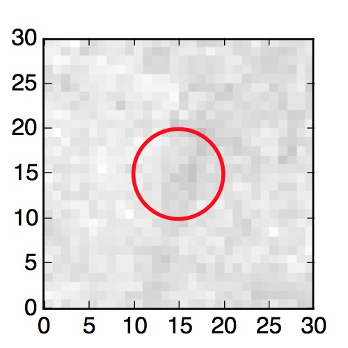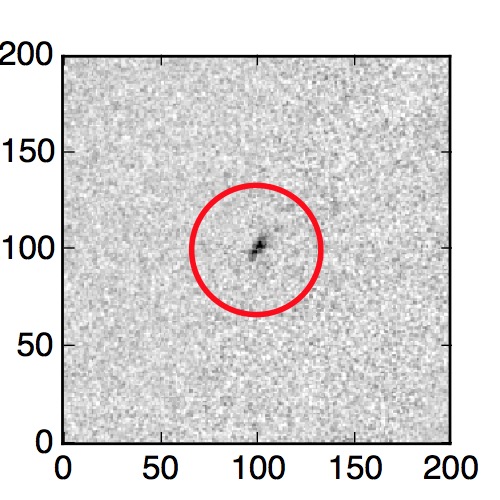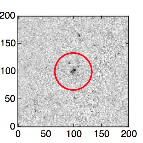 The red circle in the various panels is 1" in radius. The images are 6"x6".