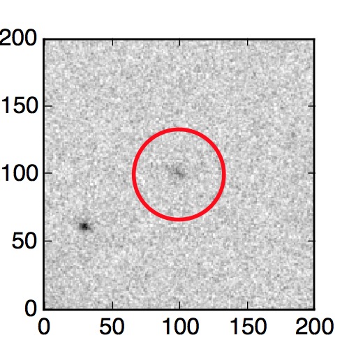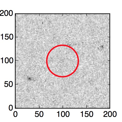 The red circle in the various panels is 1" in radius. The images are 6"x6".