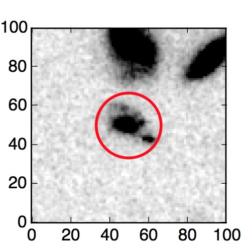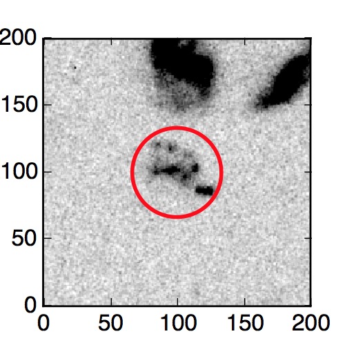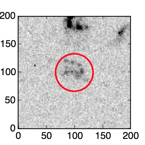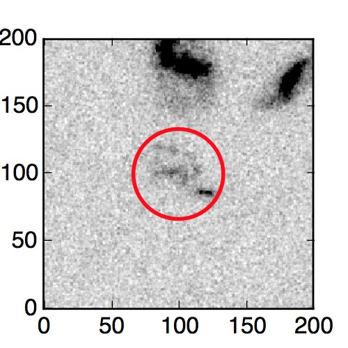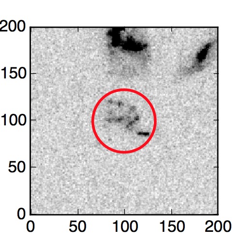 The red circle in the various panels is 1" in radius. The images are 6"x6".