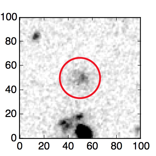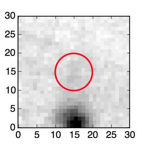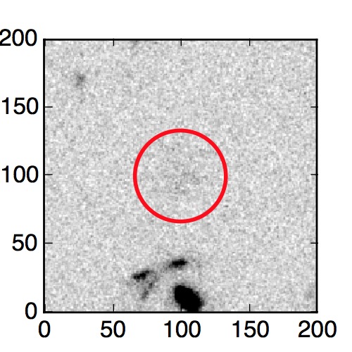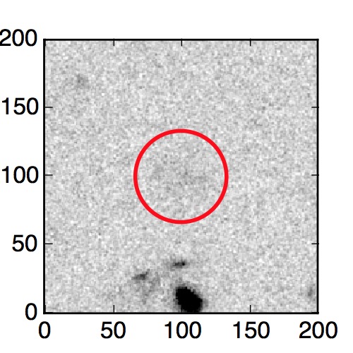 The red circle in the various panels is 1" in radius. The images are 6"x6".