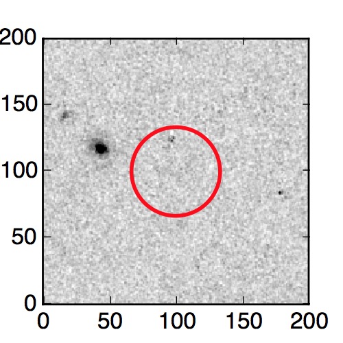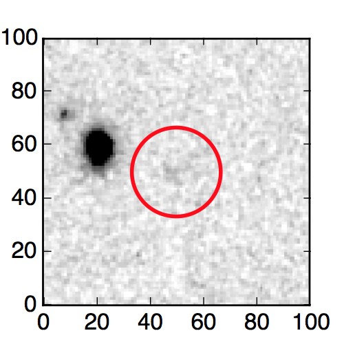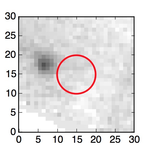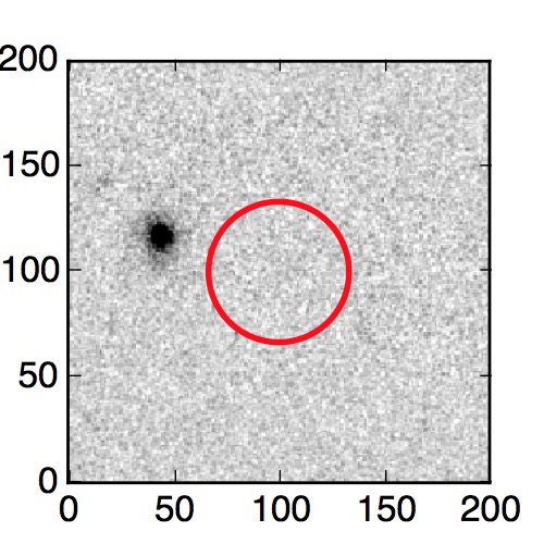 The red circle in the various panels is 1" in radius. The images are 6"x6".