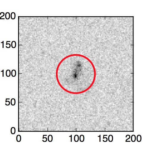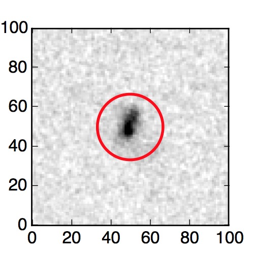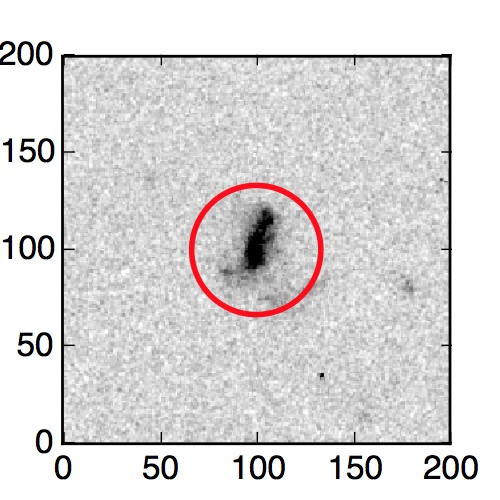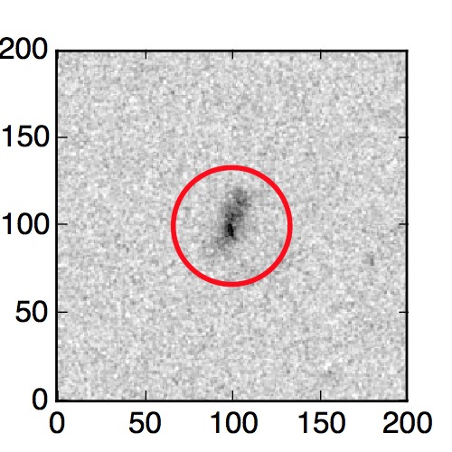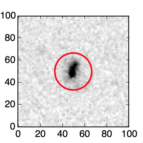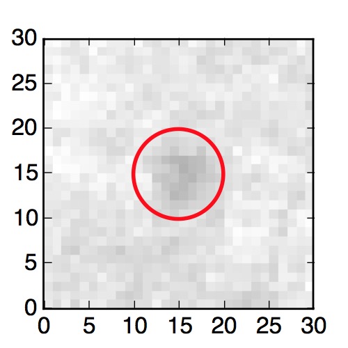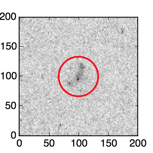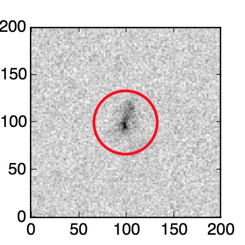 The red circle in the various panels is 1" in radius. The images are 6"x6".