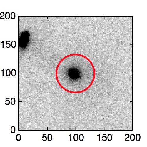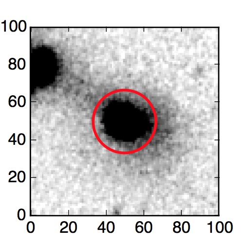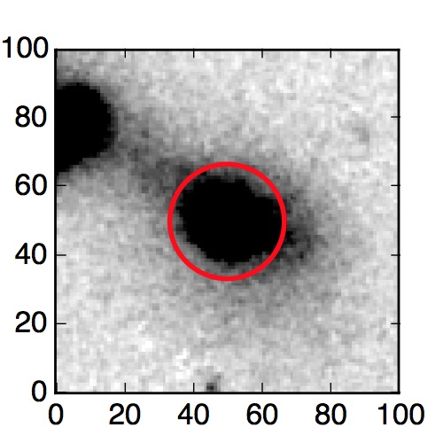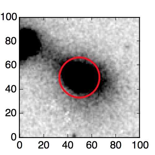 The red circle in the various panels is 1" in radius. The images are 6"x6".