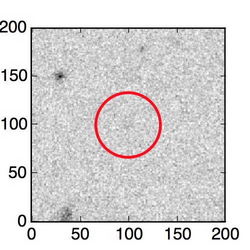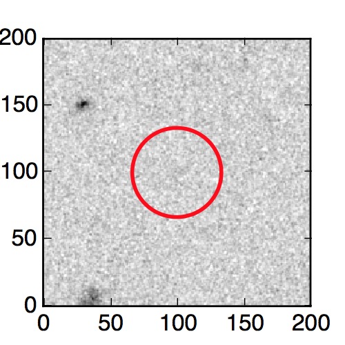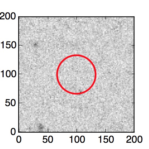 The red circle in the various panels is 1" in radius. The images are 6"x6".