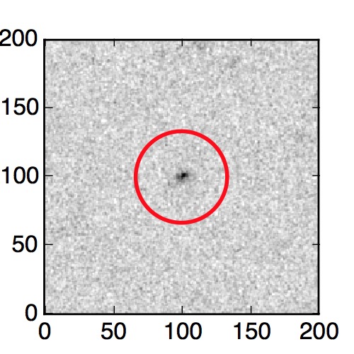 The red circle in the various panels is 1" in radius. The images are 6"x6".