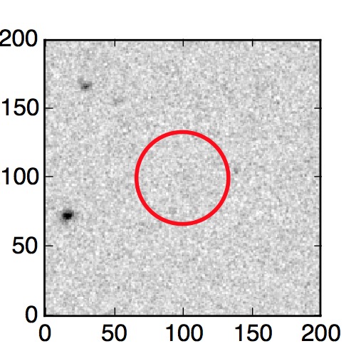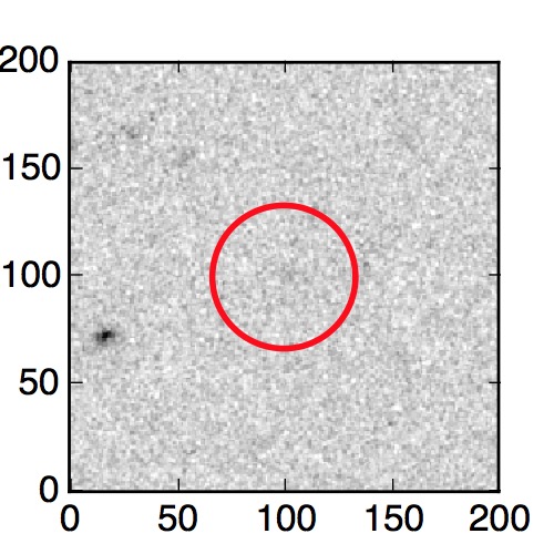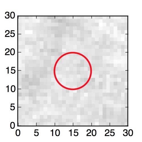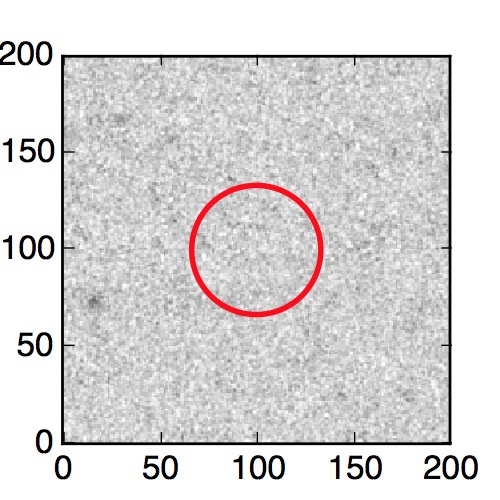 The red circle in the various panels is 1" in radius. The images are 6"x6".