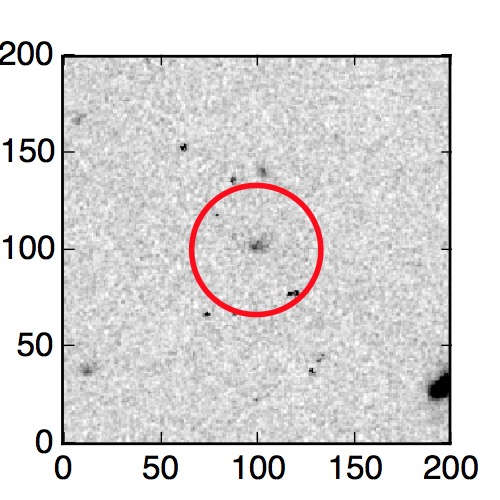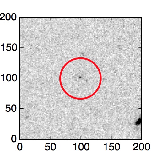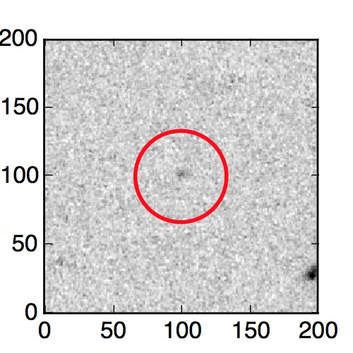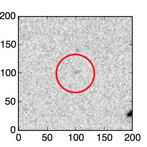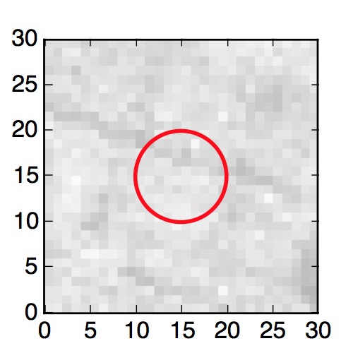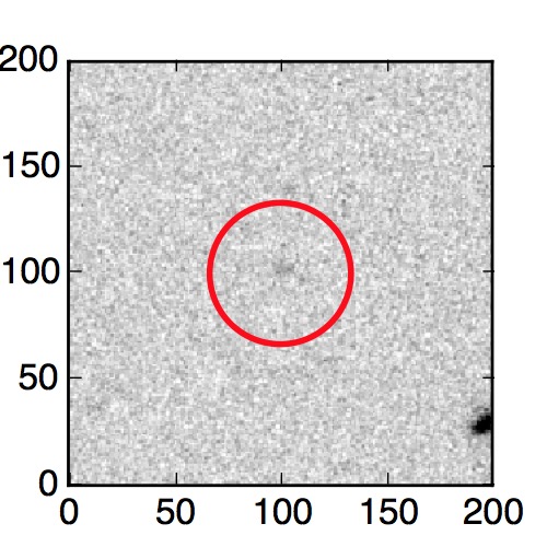 The red circle in the various panels is 1" in radius. The images are 6"x6".