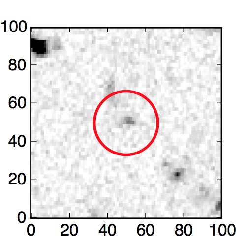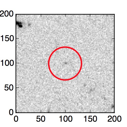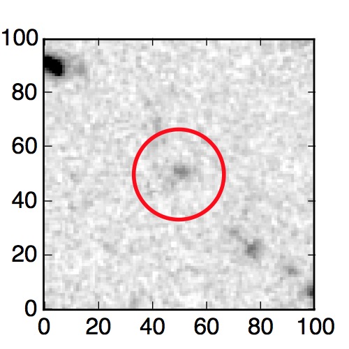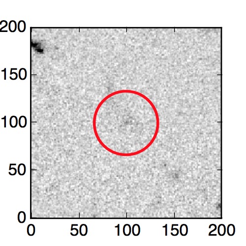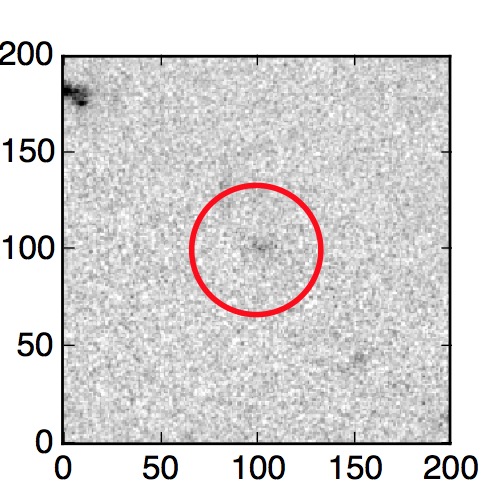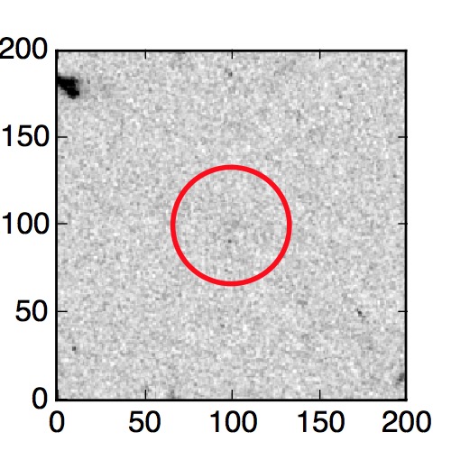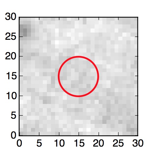 The red circle in the various panels is 1" in radius. The images are 6"x6".