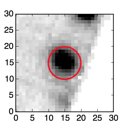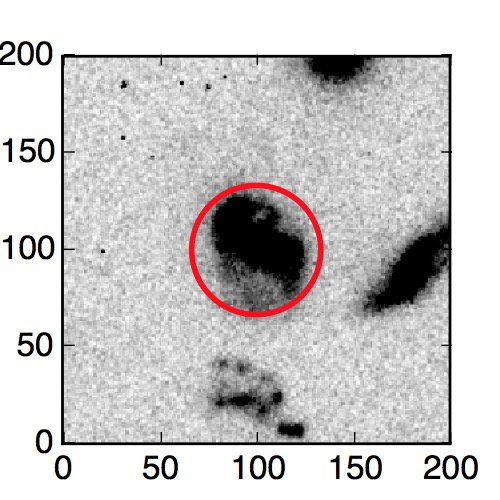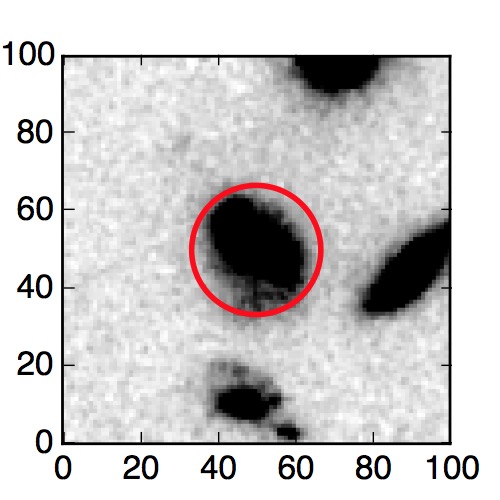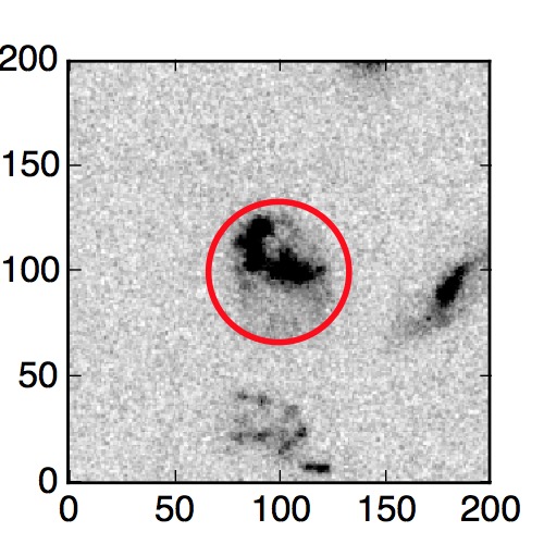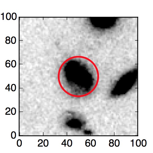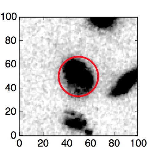 The red circle in the various panels is 1" in radius. The images are 6"x6".