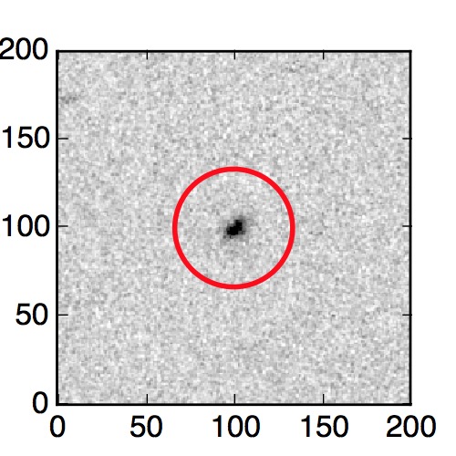 The red circle in the various panels is 1" in radius. The images are 6"x6".