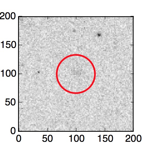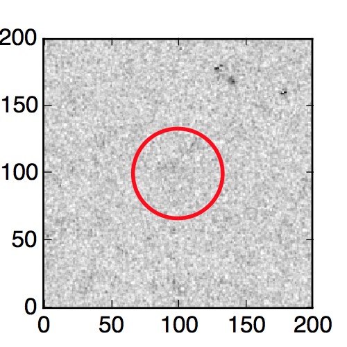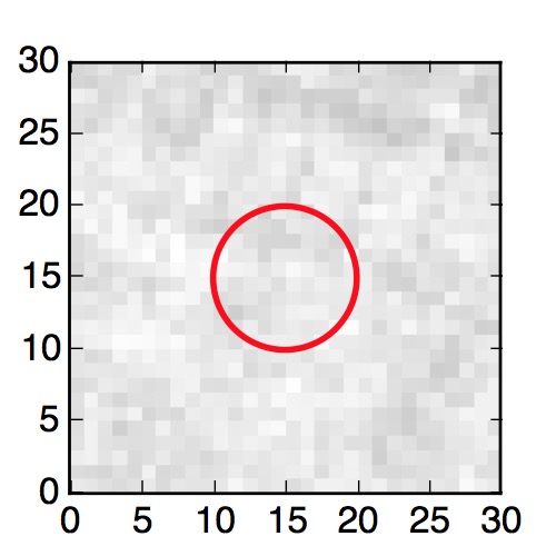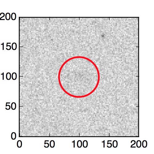 The red circle in the various panels is 1" in radius. The images are 6"x6".